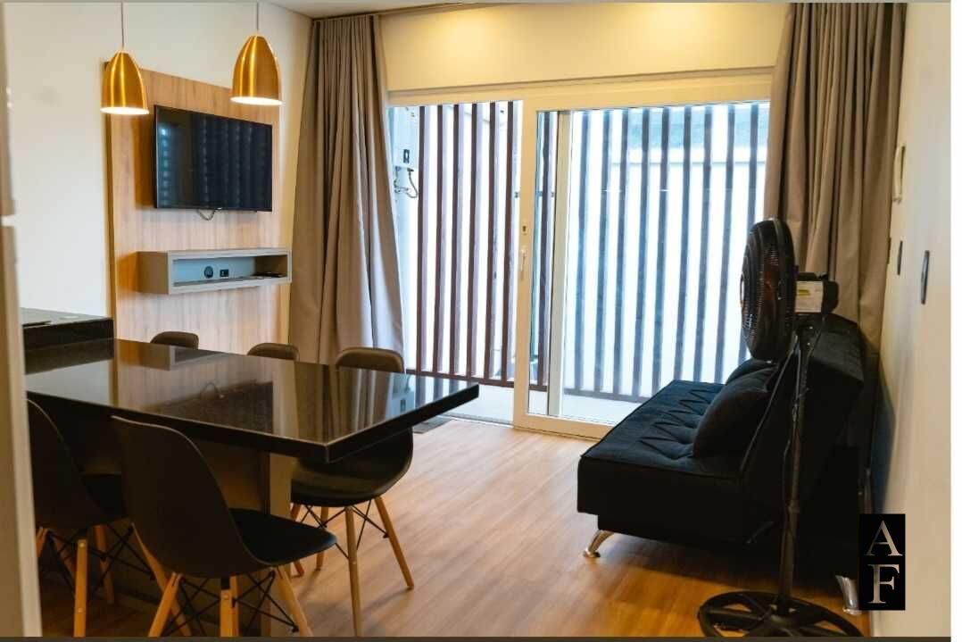 A unidade conta com um design inteligente que proporciona 2 dormitórios com camas de casal e + 1 ou 2 solteiras laterais, totalizando acomodação para até 7 pessoas, além de sala, cozinha e banheiro social. o imóvel possuí ar condicionado em ambos os quartos.