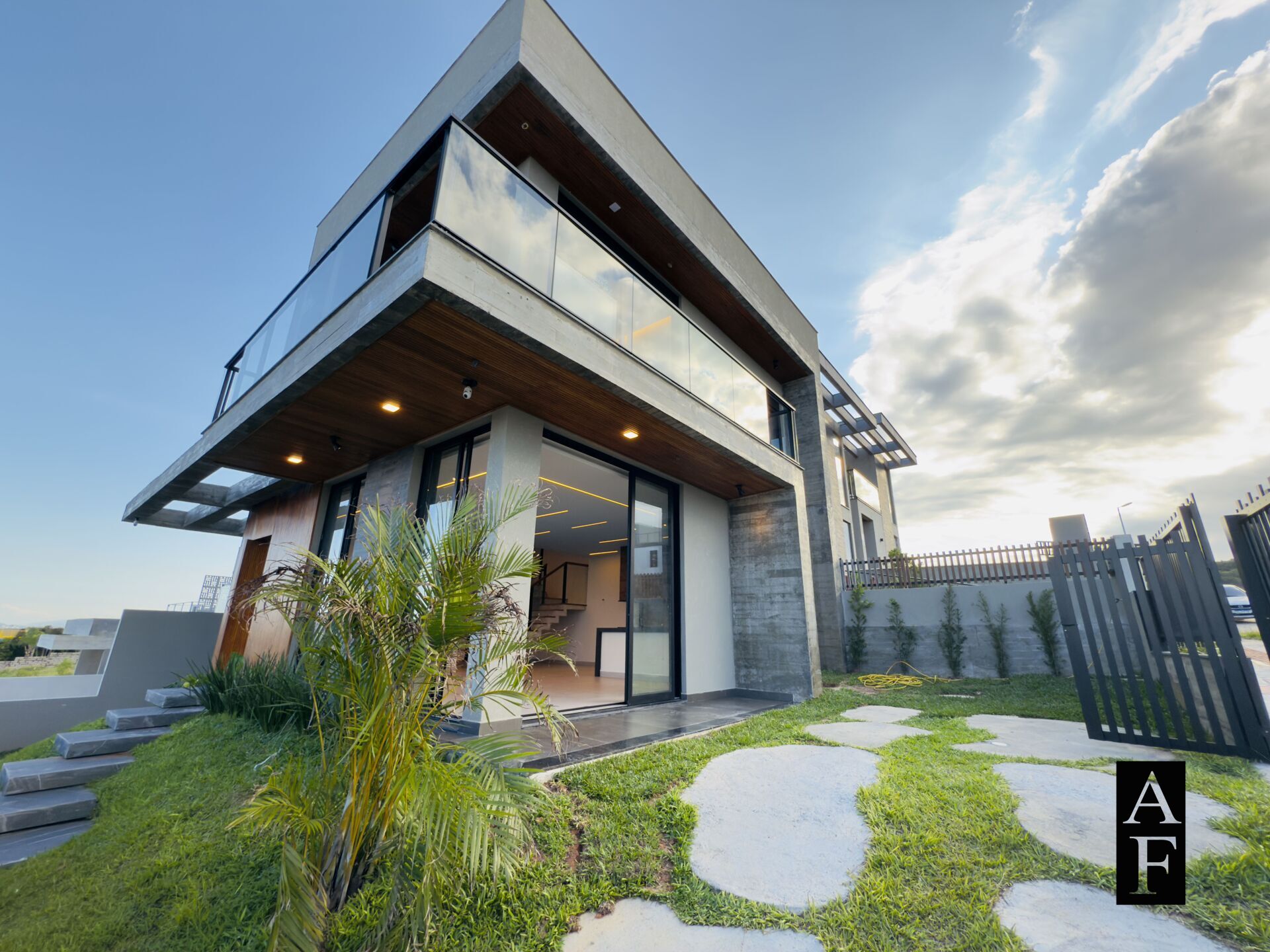 Fachada com detalhe, filete pedra natural;
