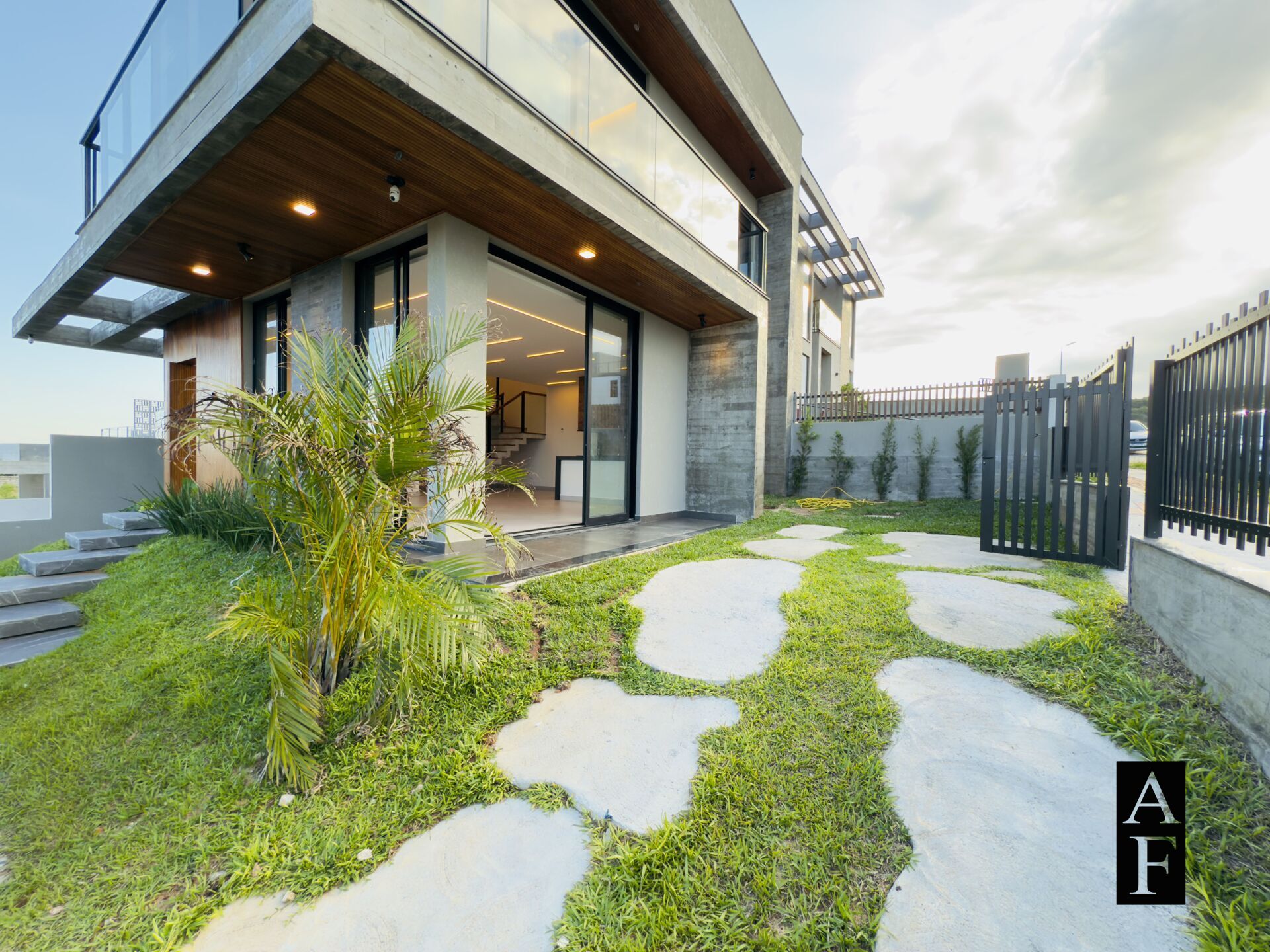 Pergolado em concreto aparente;