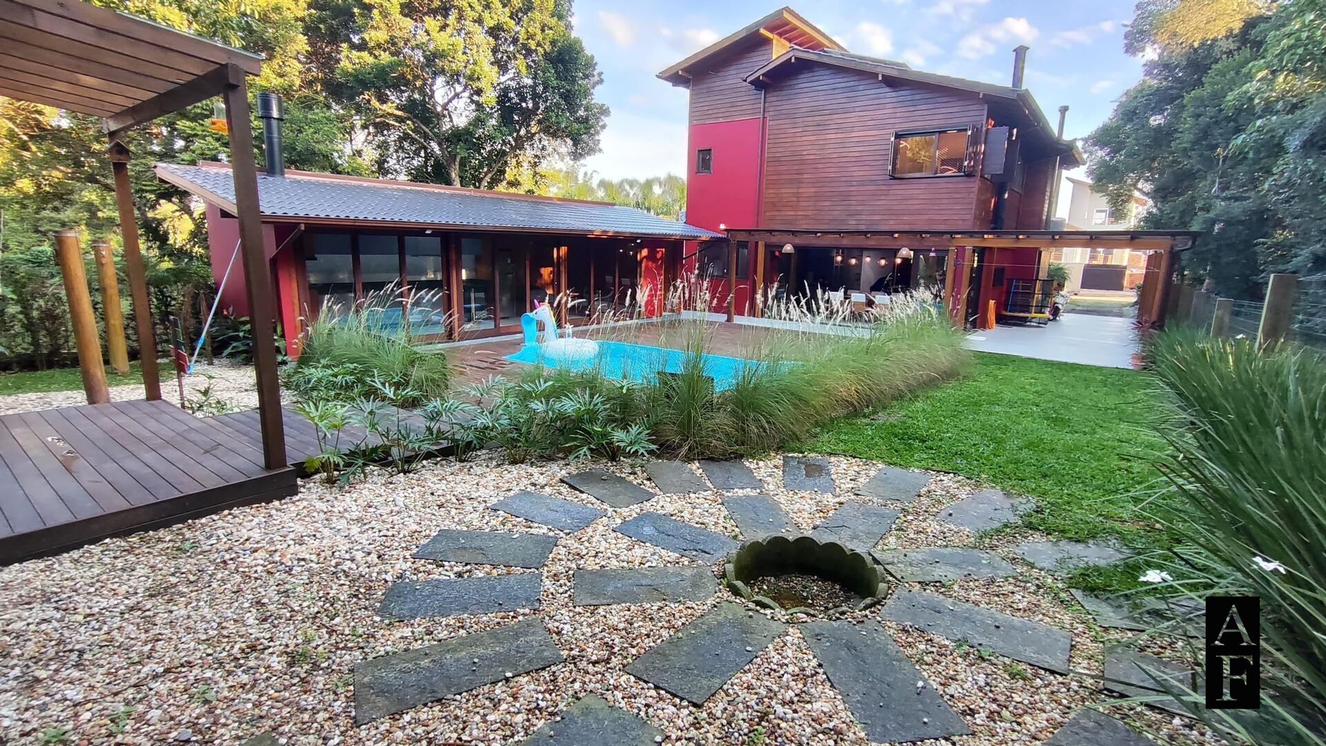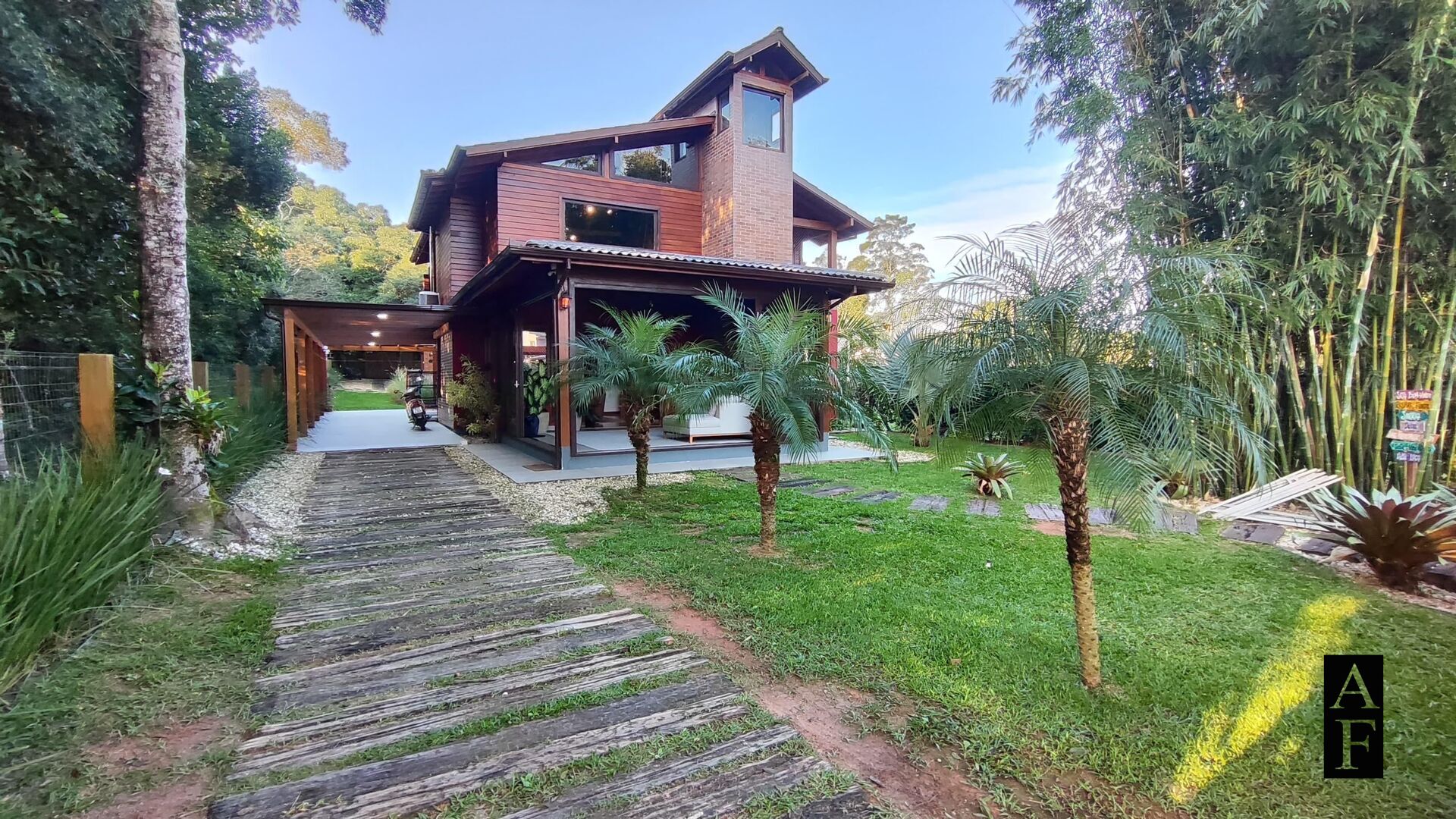 Além disso, possui brinquedoteca, mezanino, garagem coberta para 3 carros e um galpão externo em madeira.