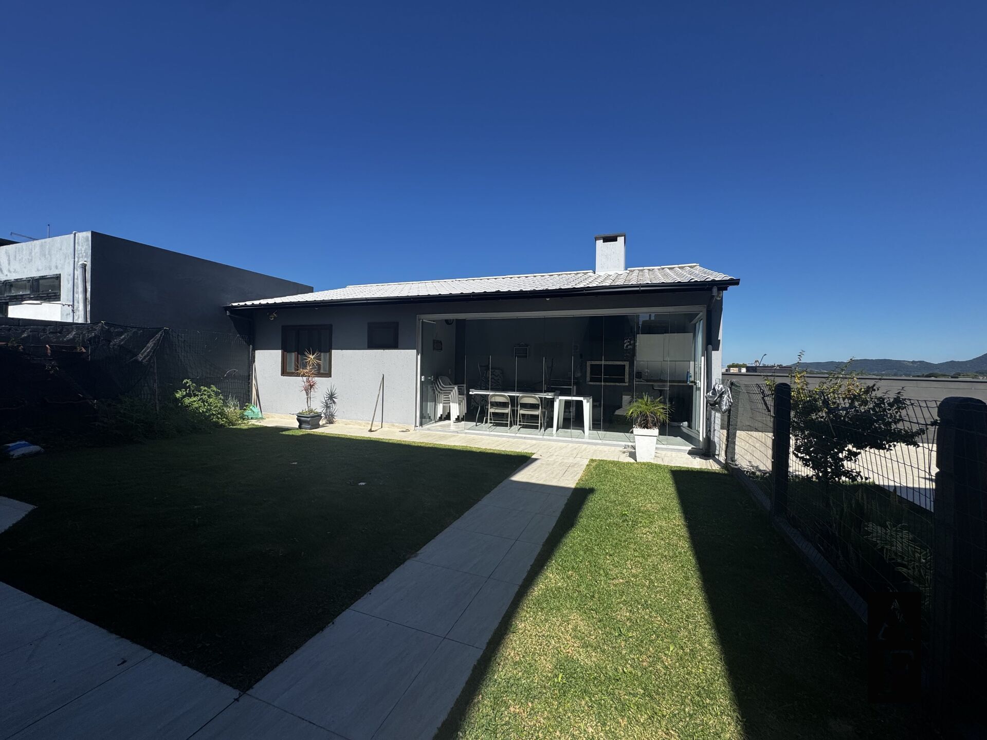 Com 153 metros quadrados construídos com três dormitórios, sendo uma suíte, área de lazer com churrasqueira e um espaço para escritório .