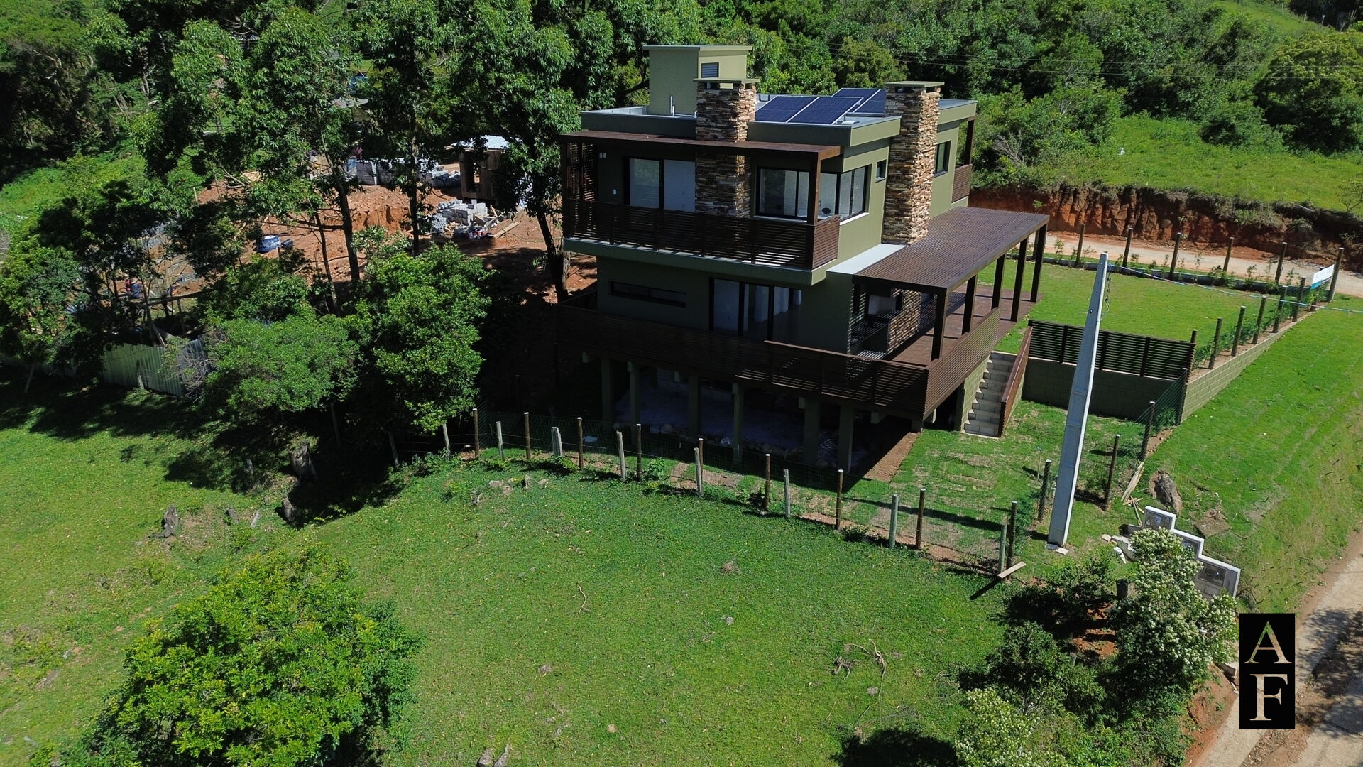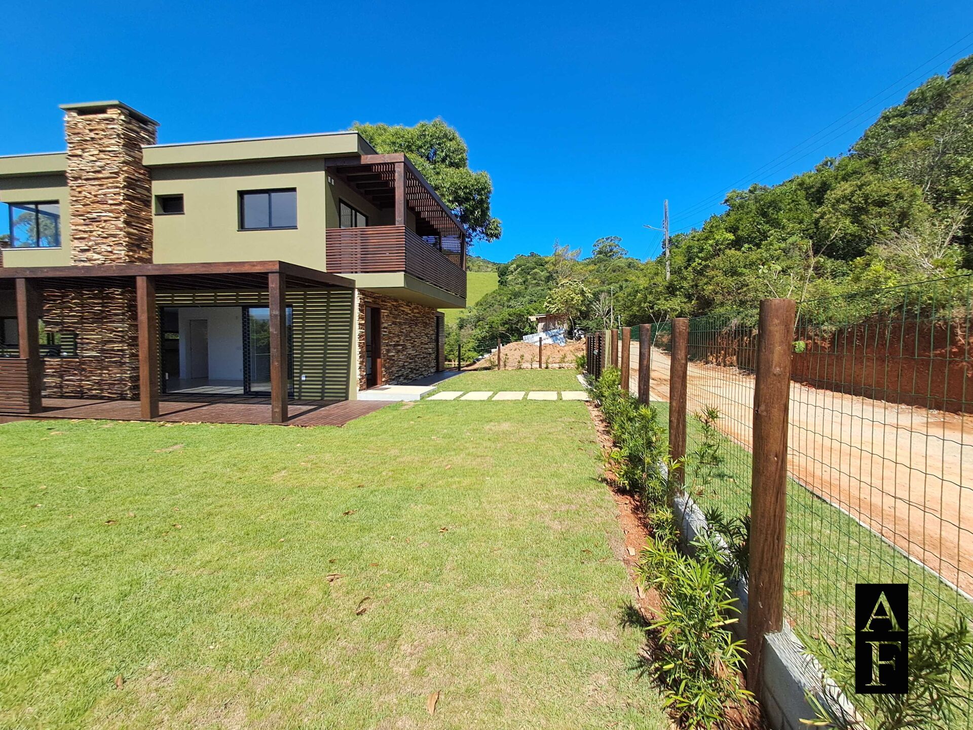 A casa será entregue com cerca e portal de entrada, portões em madeira para acesso dos pedestres e dos veículos.