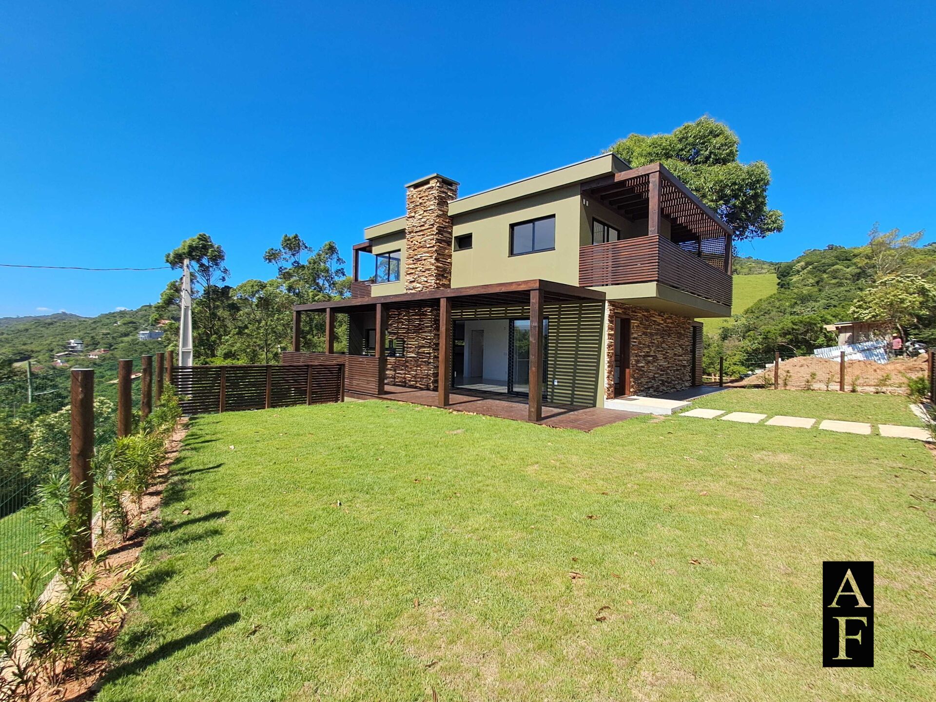 São 162 metros de área construída coberta, acrescida de 60 metros de varandas e pergolados, harmonizados com a natureza do local e com a praticidade que uma casa moderna exige. Terreno individual de 384,6 m² com uma frente de 22,54 m.