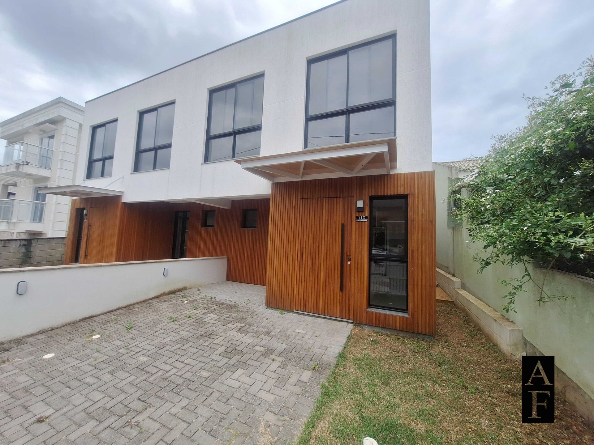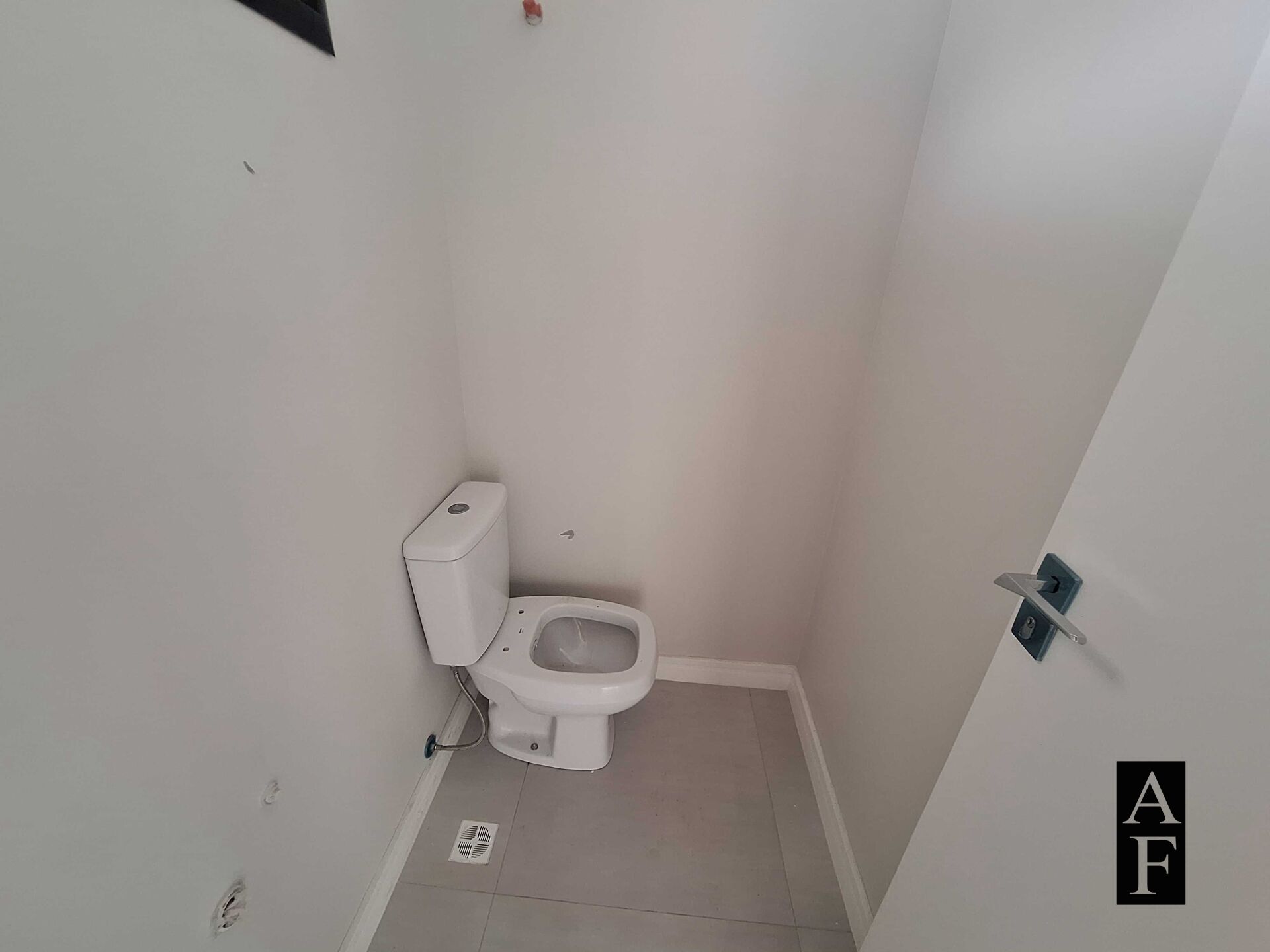 O pavimento térreo possui sala de estar e jantar conjugada com a cozinha, área de serviço e lavabo.