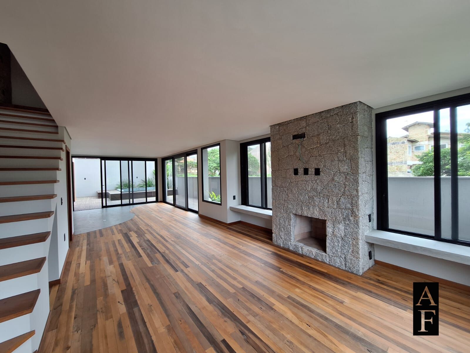 • Acabamentos de madeira nobre e pedra;