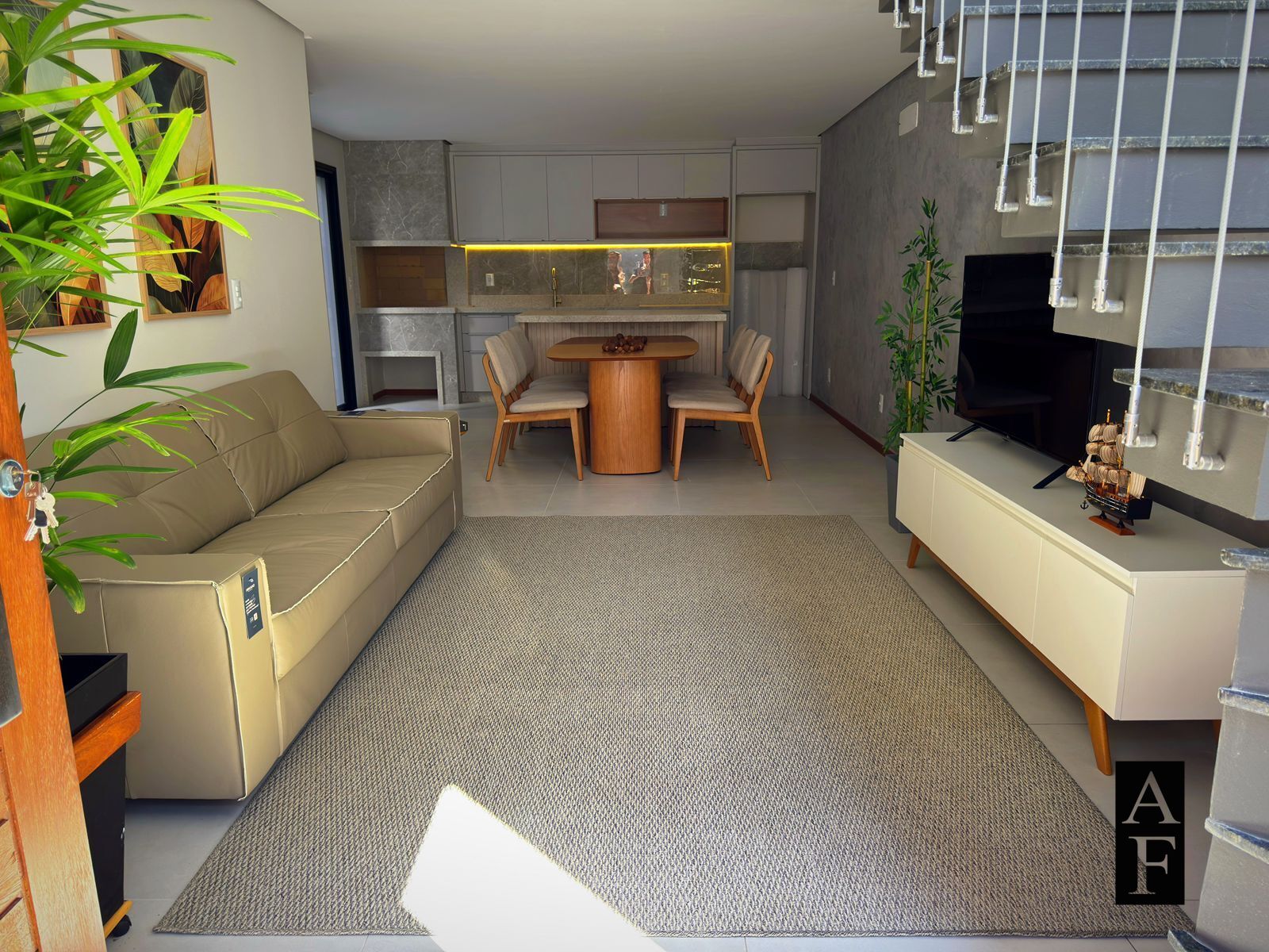No seu interior no térreo, uma ampla cozinha conjugada com sala de estar e jantar com churrasqueira, lavabo, área de lavanderia e estacionamento privativo.