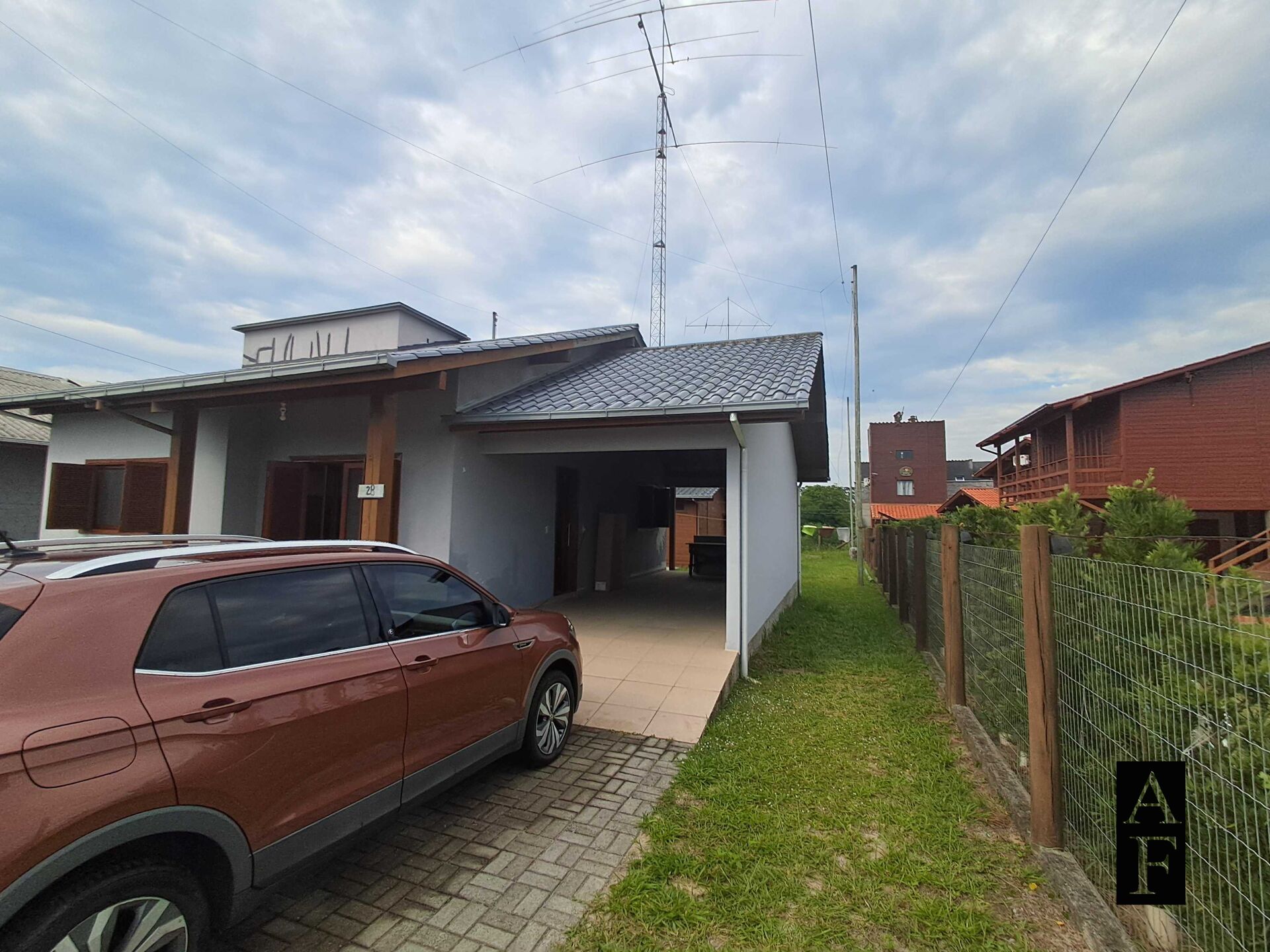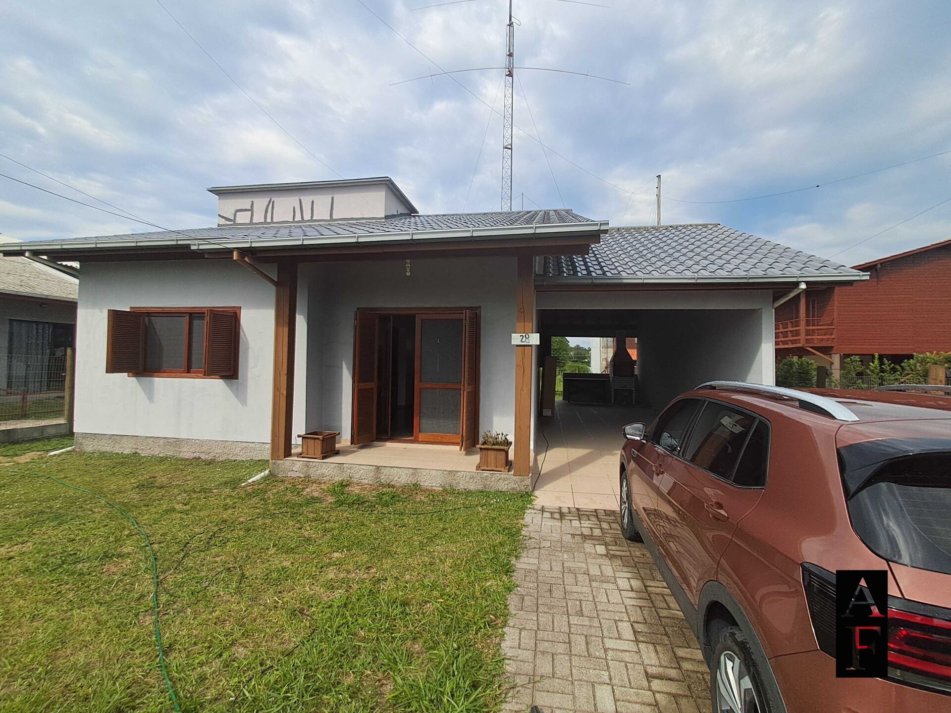 Vende-se duas Casas no mesmo terreno, a primeira toda de alvenaria, térrea, 121 m2 de área construída, garagem coberta com churrasqueira, dois dormitórios, 1 banheiro com aquecimento á gás no chuveiro e pia, cozinha, mesa de jantar e sala de estar integrado ao mesmo ambiente, proporcionando momentos únicos em família, área de serviço, estrutura de telhado alto com madeira auto-clave de pínus tratado de melhor qualidade na região, cobertura de telhas esmaltadas, aberturas e venezianas de angelim, em perfeito funcionamento, toldo externo nas janelas de acrílico, e entregue com pintura nova parte externa.