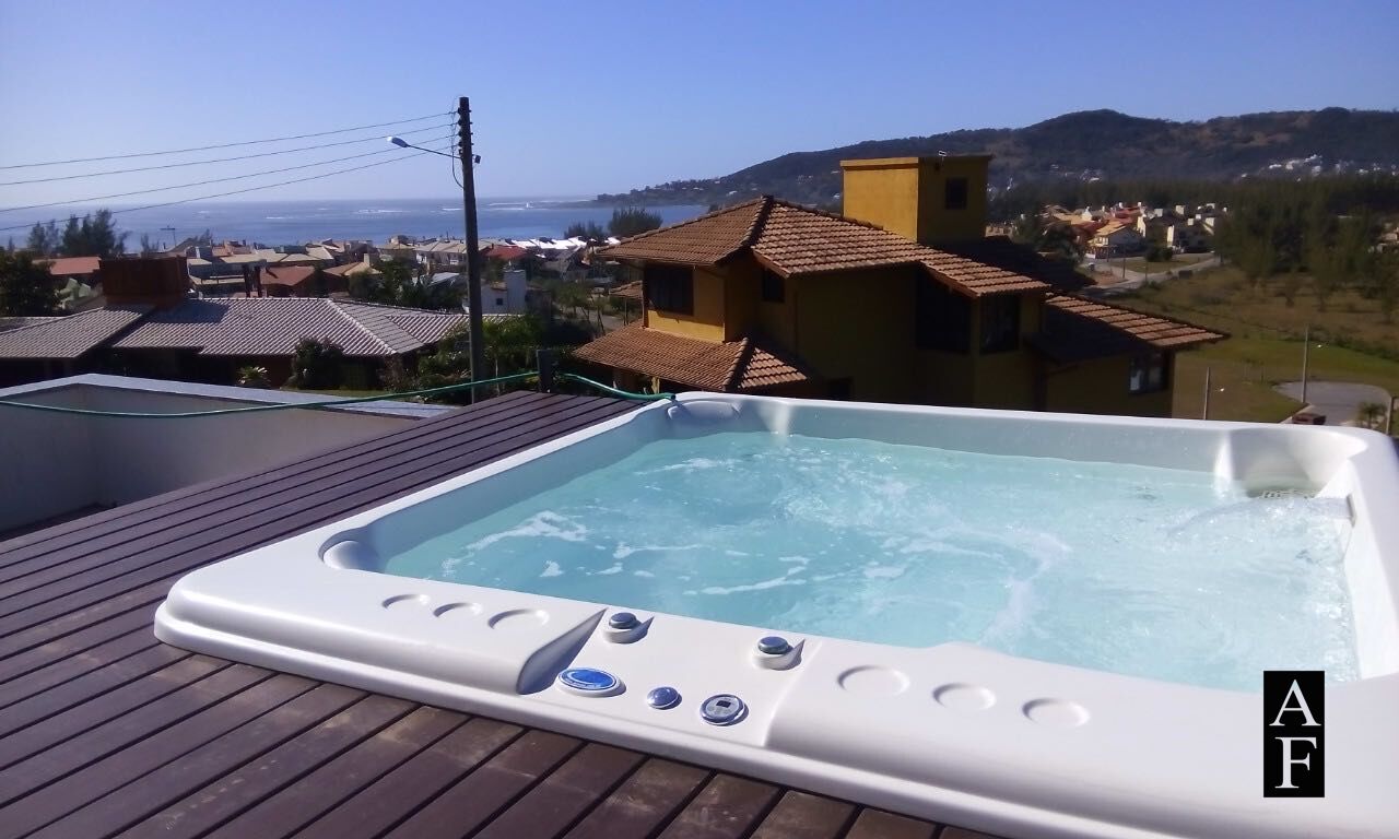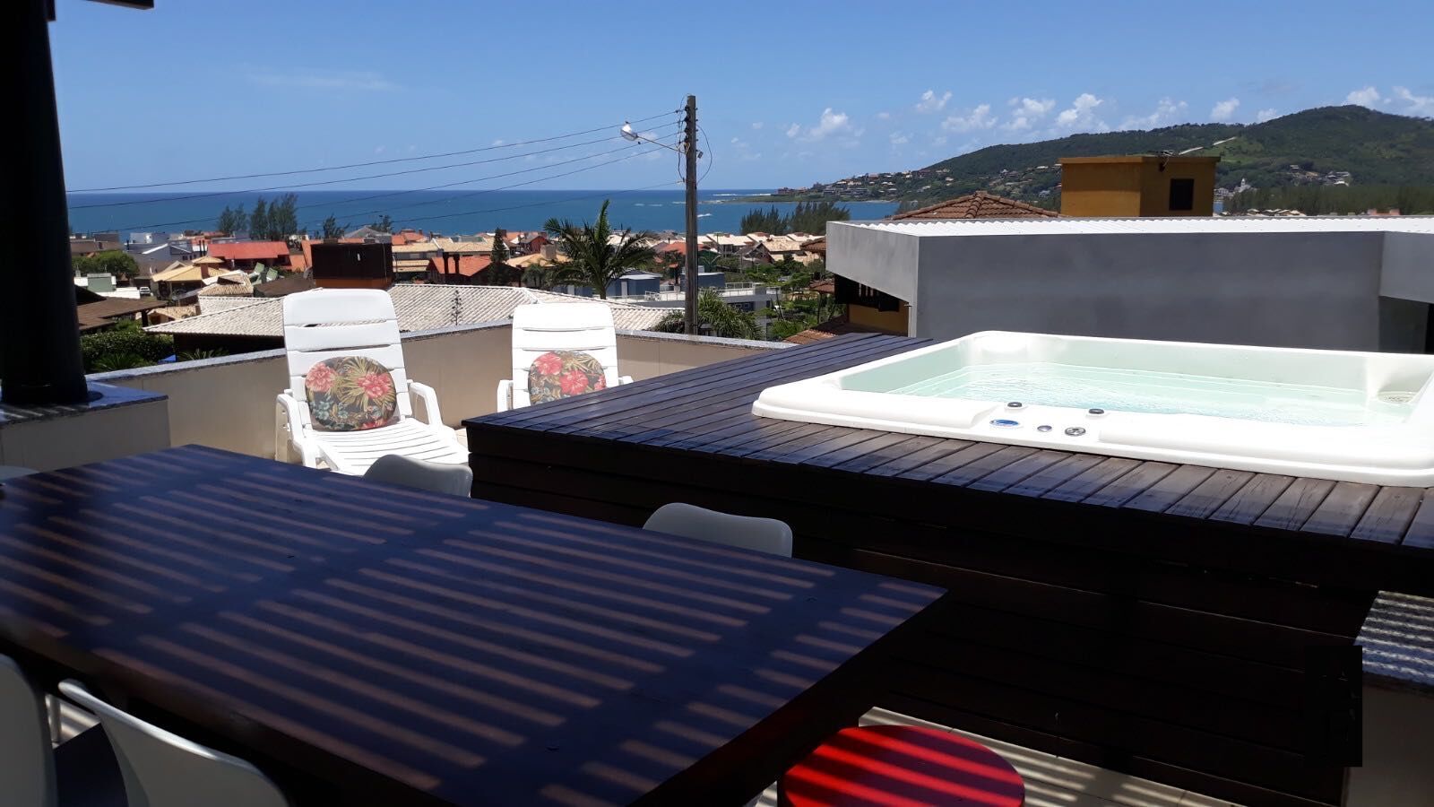 No terraço Jacuzzi com vista para o mar e churrasqueira, totalmente privado!