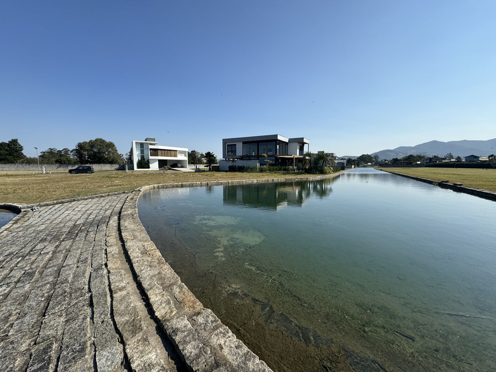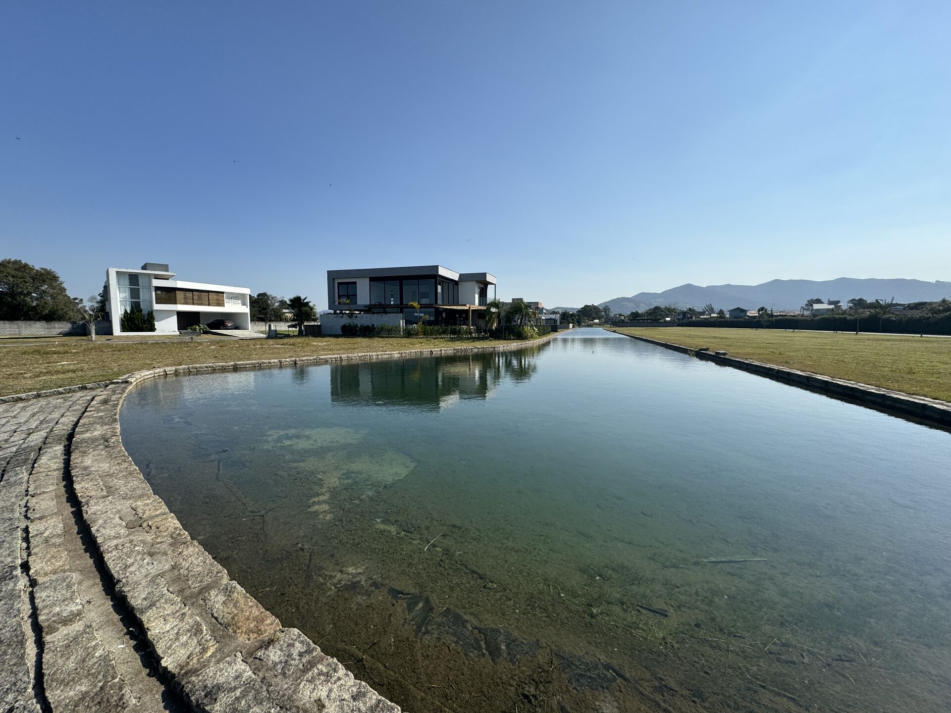 Grande diferença dos outros terrenos do Loteamento é que não é um terreno de tamanho regular, os fundos tem a maior face, justamente beirando o lago, e com face norte.